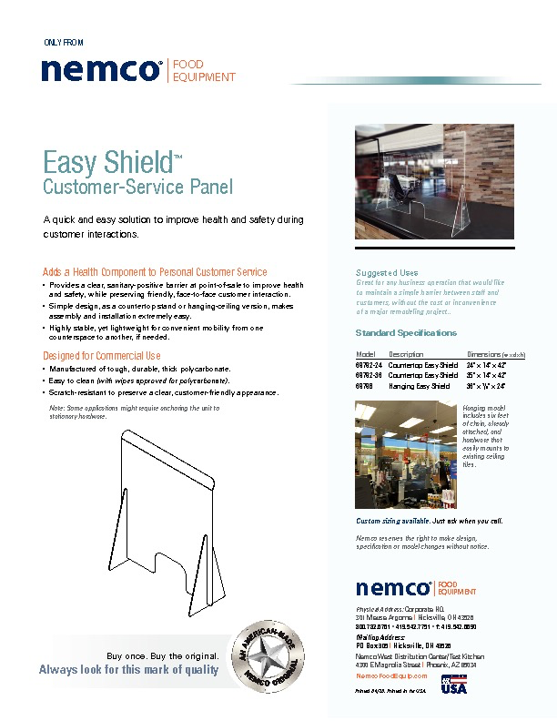 Easy Customer Service Shield, countertop, 36” x 14” x 42” OA, polycarbonate